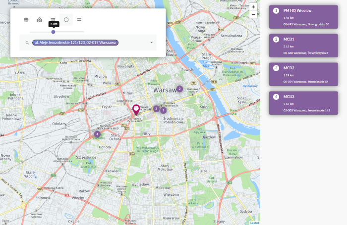 Klienci mogą wprowadzać i natychmiast zweryfikować adres dla, którego chcą wyszukać placówki