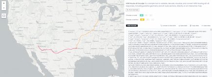 Tool to validate, decode, visualize, and convert HERE Routing API v8 responses, including polyline geometry and all route sections, directly on an interactive map.